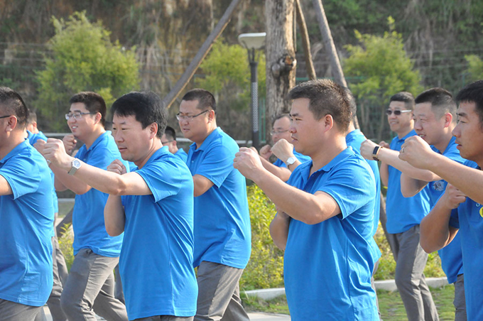 每天清晨大家都进行雷打不动的军体拳晨练,迎着朝阳,挥舞手臂,喊着节拍,一招一式无不认真,即使汗水浸透衣服,也没有一个人喊累,没有一个人停下。大家享受着运动带来的活力和舒畅,用热情迎接每天的到来。