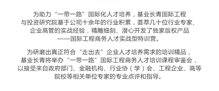 北京基业长青管理咨询股份有限公司(简称“基业长青”,股票代码:838597)成立于2005年,是一家专注于“走出去”人才职业化培训与咨询的知识型企业,秉承“视项目为生命”的事业理念,专注“走出去”企业...