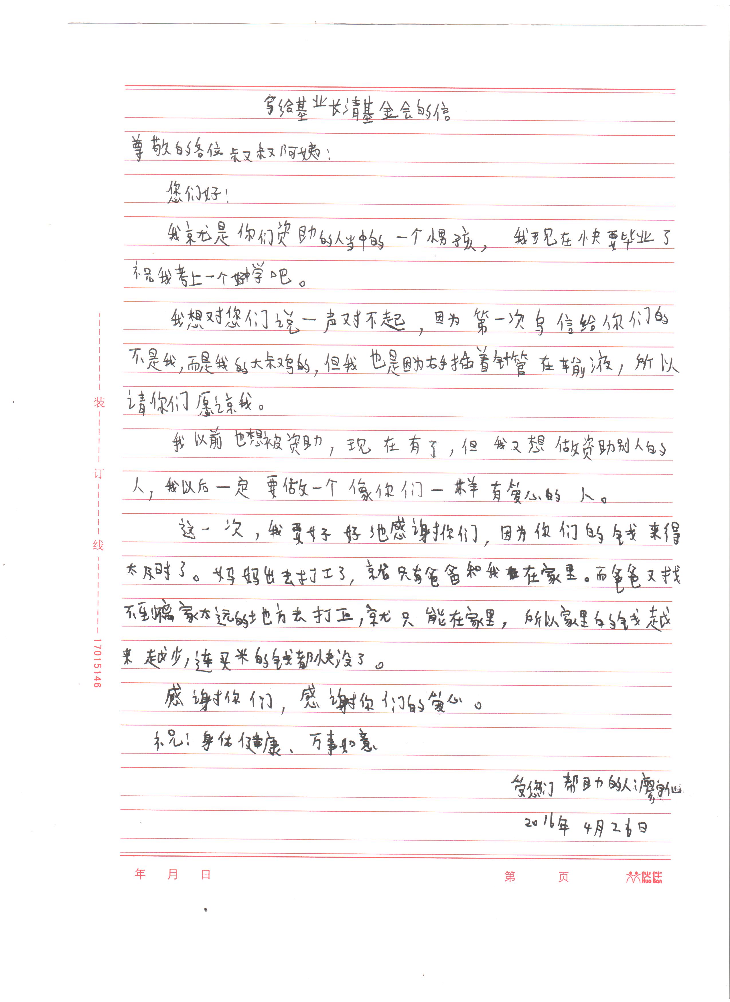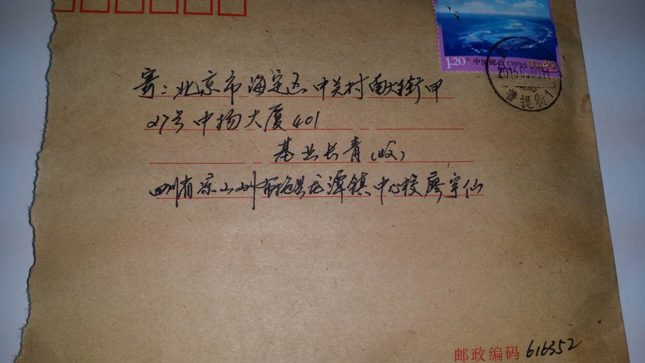 5月6日,基业长青工作人员收到一封用牛皮纸信封装的手写书信。在这个信息发达的网络时代,手写的信已不常见,可是封皮上娟秀的文字吸引了大家的眼球。这封信是来自四川省凉山州布拖县龙潭镇中心校廖宇仙同学的感谢信,下面是信中的内容:
