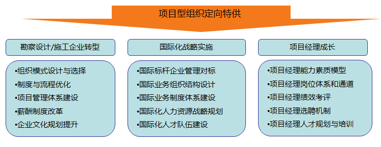 博知兴业作为项目型企业管理咨询的专业成长顾问,融汇国际先进的管理理念,总结中国企业案例实践经验,系统地为项目导向型组织提供公司战略、组织管控、制度流程、人力资本、企业文化及项目管理六大成长解决方案,助力企业基业长青!